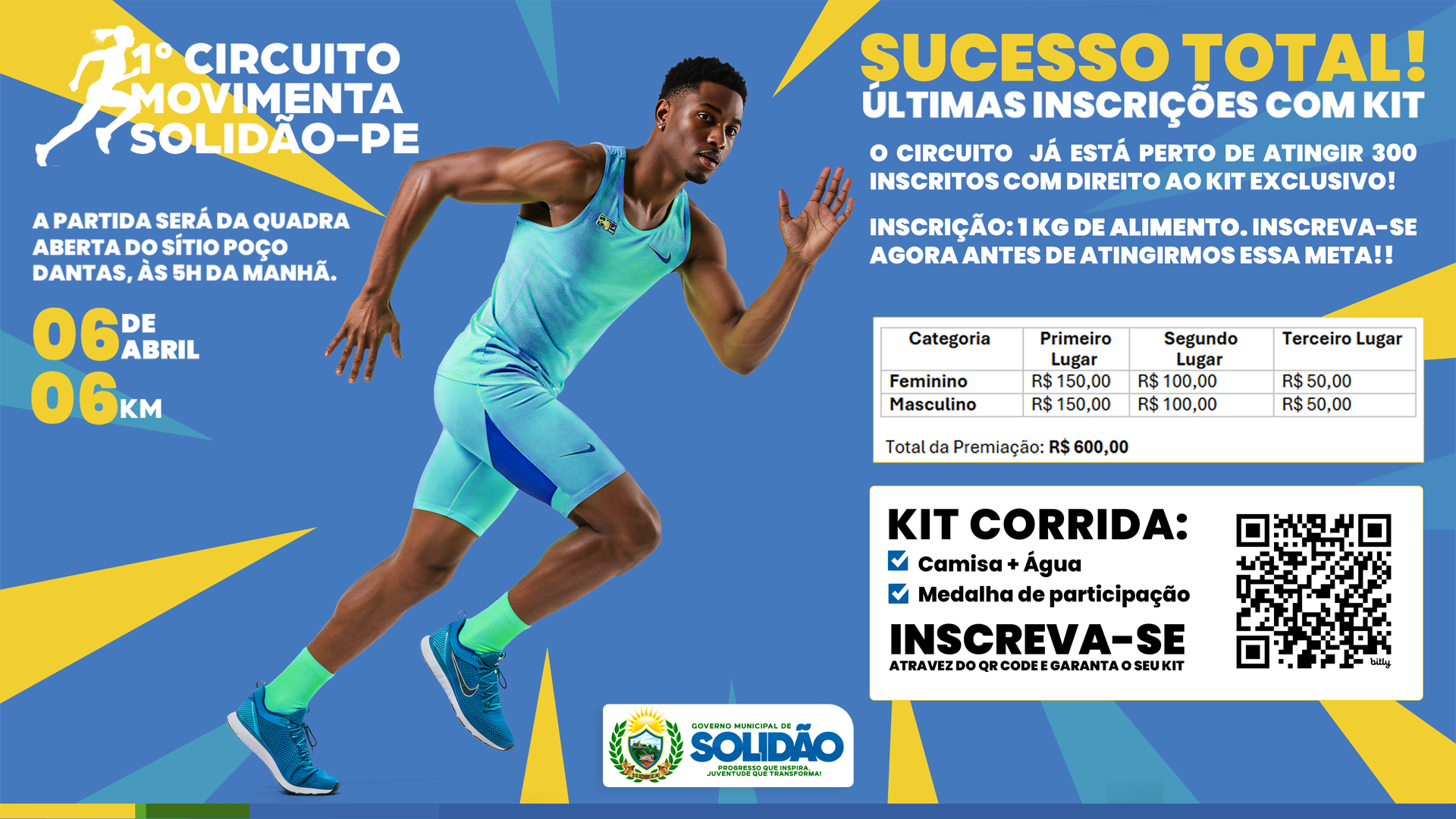 Neste domingo, 6 de abril, o município de Solidão vivenciará um momento inédito com a realização do 1º Circuito Movimenta Solidão-PE. A iniciativa, que visa incentivar a prática esportiva e a qualidade de vida, é realizada em alusão ao Dia Mundial da Saúde, comemorado em 7 de abril, e promete movimentar a cidade com um