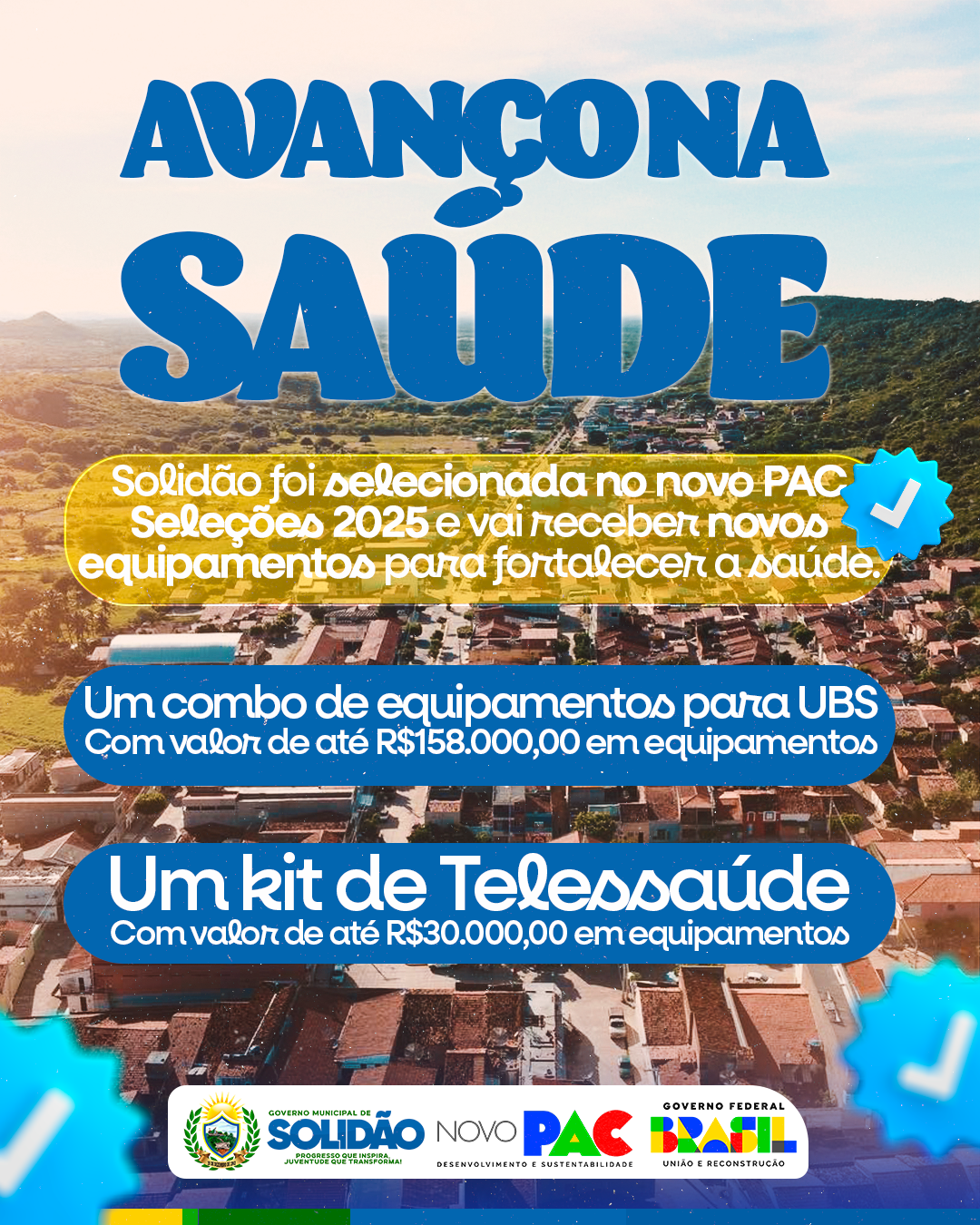 A cidade de Solidão, no Sertão de Pernambuco, celebra mais um avanço importante na área da saúde pública. O município foi oficialmente selecionado no Novo PAC – Seleções 2025, programa do Governo Federal que visa o fortalecimento de políticas públicas essenciais. Com isso, Solidão será contemplada com novos equipamentos para as Unidades Básicas de Saúde
