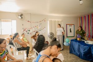 O encontro contou com a presença da coordenadora do Programa Criança Feliz, visitadoras e das gestantes beneficiadas. Além de levar informação e orientação, o momento representou um gesto de cuidado e apoio às futuras mães do município.