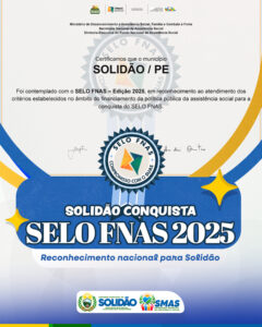 O município de Solidão-PE foi contemplado com o Selo do Fundo Nacional de Assistência Social (SELO FNAS – Edição 2025), um importante reconhecimento concedido aos municípios que atendem aos critérios estabelecidos no âmbito do financiamento da política pública da assistência social.