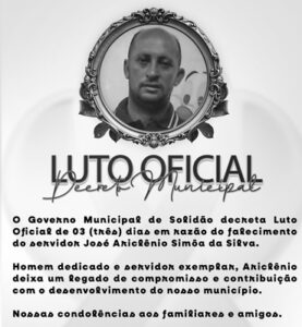 O Governo Municipal de Solidão, por meio do Decreto nº 029/2025, decretou Luto Oficial de três (03) dias em virtude do falecimento do servidor José Ariclênio Simão da Silva, ocorrido no dia 07 de outubro de 2025.
