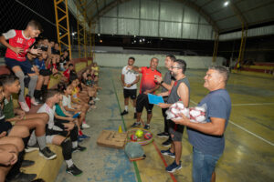Os kits incluem bolas de futsal e handebol, cones, cordas, bambolês, pranchetas, apitos, cronômetros e outros materiais de apoio para treinamento. A distribuição será ampliada para atender todas as escolas e espaços esportivos na cidade.