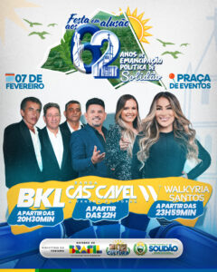 Em Solidão, no dia 07 de fevereiro, será realizada a festa em alusão aos 62 anos de Emancipação Política do município, com programação musical na Praça de Eventos, reunindo a população em um momento de lazer, cultura e confraternização.