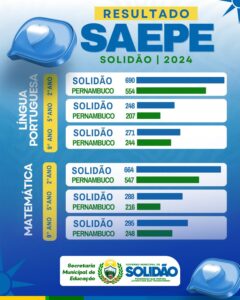 A educação de Solidão tem motivos de sobra para comemorar. Os resultados do SAEPE (Sistema de Avaliação da Educação de Pernambuco) em 2024, revelam que o município se destacou em todas as etapas avaliadas, superando os resultados de referência nas disciplinas de Língua Portuguesa e Matemática.